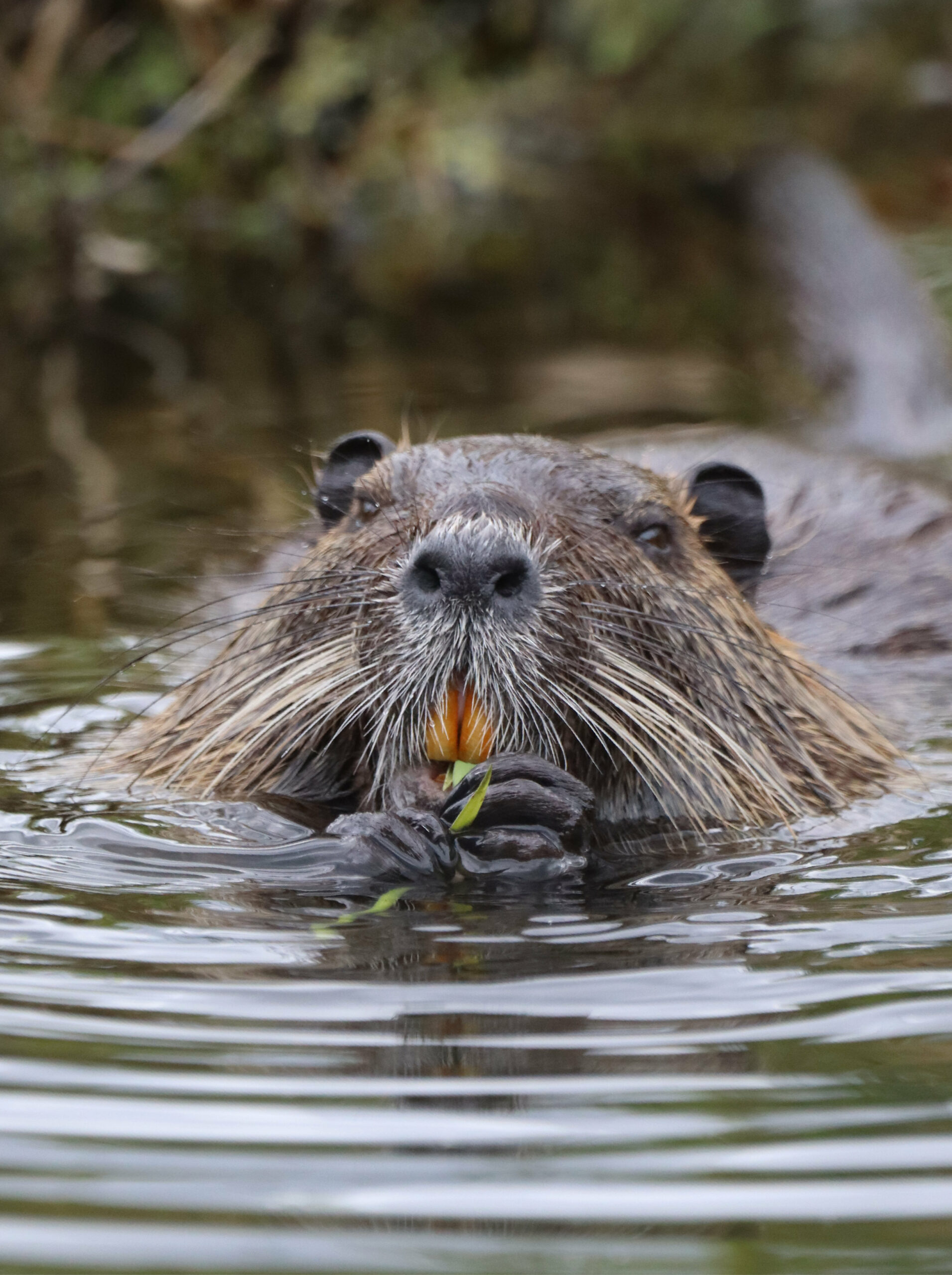 Nutrias haben gelbe Schneidezähne. Foto: Michaela Stenz.
