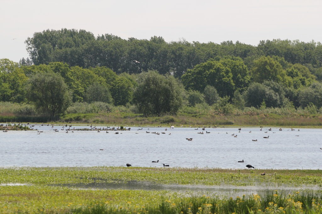Seit 2004 können Sie ihre Blicke vom 12 m hohen Aussichtsturm über die Rieselfelder schweifen lassen. Die Rieselfelder reichen soweit, bis eine durchgehende Baumreihe oder zusammenhängende Waldstrukturen den Horizont begrenzen. Der Turm ist an eine vorhandene Gehölzstruktur angelegt. Dadurch ist der Blick zum Kanal zum Teil verwehrt. Allerdings wurden so die negativen Einflüsse auf die Vogelwelt, die ein allein stehender Turm im weiten Grünland gehabt hätte, verringert.