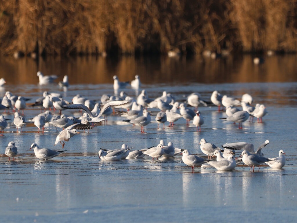 Nach Abschluß von Pflege- und Wartungsarbeiten konnte zum Wochenende bereits wieder angestaut werden. So standen den Wasservögeln mit den Stauteichen auch die größten Wasserflächen wieder für Rast und Ruhe zur Verfügung. Gerade rechtzeitig, da die übrigen Bewässerungsflächen teilweise bereits kurzzeitig etwas Eisbildung zeigten.